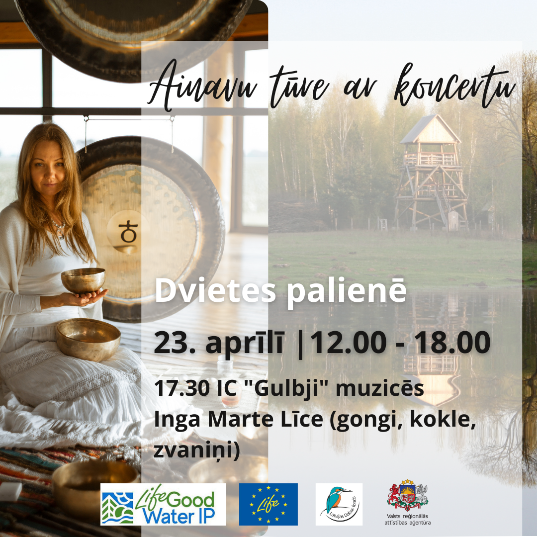 Ainavu tūres noslēgumā plkst. 17.30 pie Dvietes palienes informācijas centra “Gulbji” ar ainavu saspēlēsies Inga Marte Līce, rosinot doties gongu, kokles, zvaniņu u.c. dziedošo instrumentu skaņu piedzīvojumā. Marte Līce skaņu terapiju apguvusi pie skolotājiem no Latvijas, Lietuvas, Krievijas un ASV, studē mūzikas terapiju Rīgas Stradiņa Universitātē. Visi tūres dalībnieki bez maksas tiks cienāti ar siltu Bebrenes muižas miežu putru, par atsevišķu maksu būs pieejama Dvietes saldējuma degustācija.